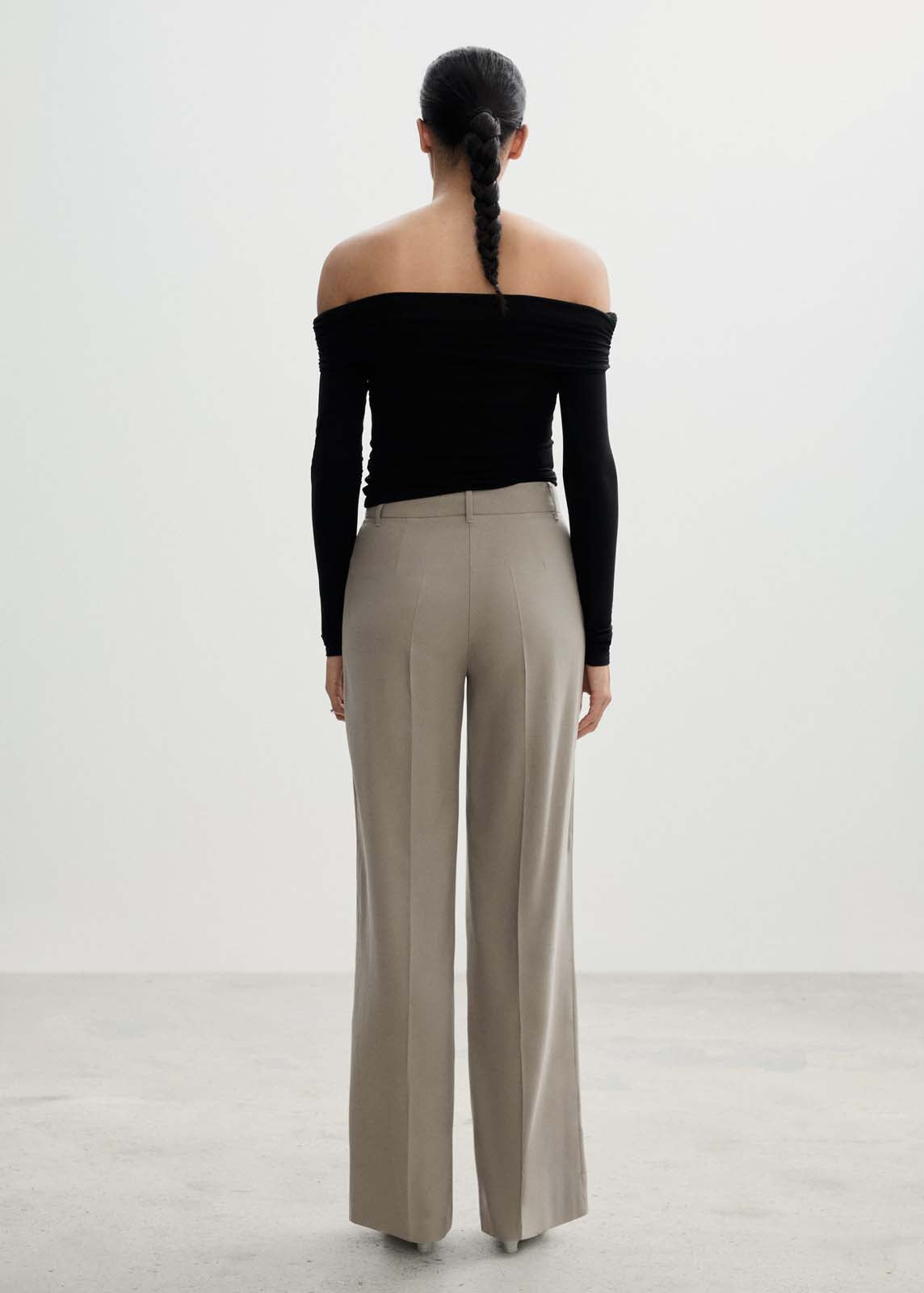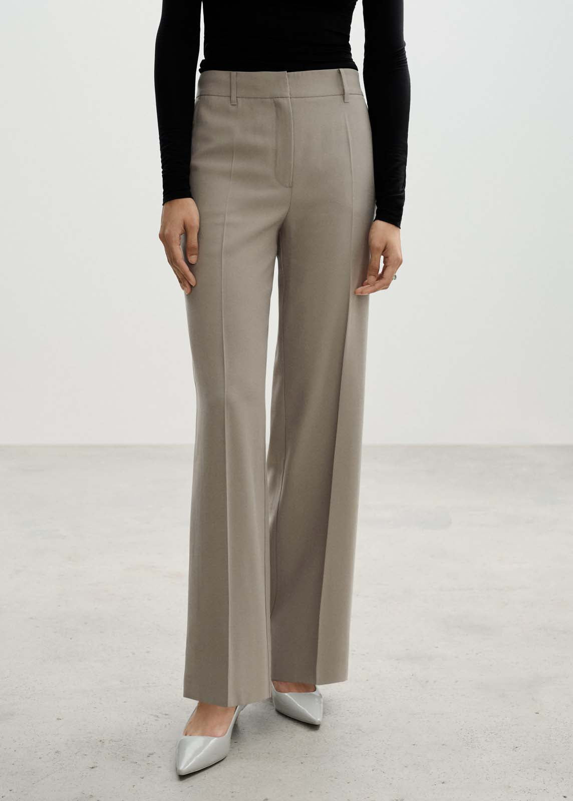 Diseño wideleg,Trabillas,Tejido fluido,Tiro medio,Detalle de pinzas,Dos bolsillos laterales,Cierre oculto de botón, gancho y cremallera,Disponible Plus,Diseño largo,La modelo mide 1,80 y lleva una talla S/36
