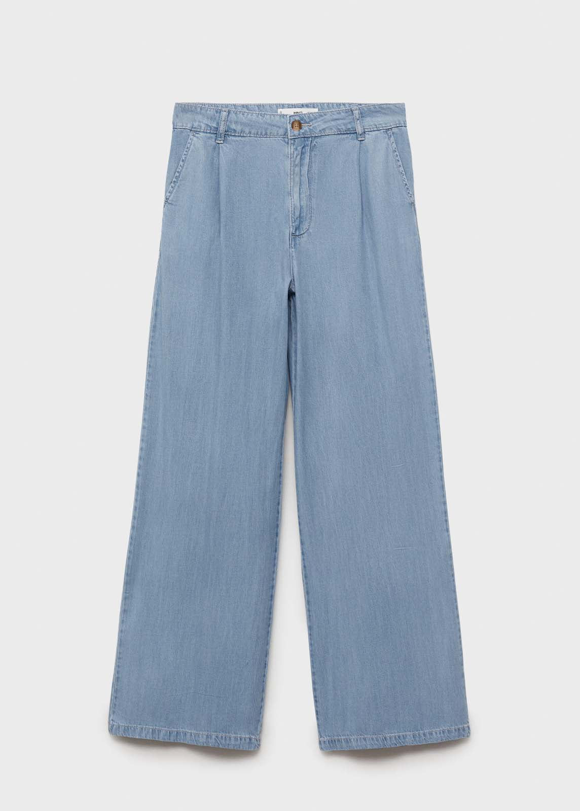 Tejido mezcla de algodón y lyocell,Diseño wideleg,Trabillas,Tiro medio,Cierre delantero de cremallera y botón,Detalle de pinzas,Dos bolsillos laterales,Soft denim,Diseño largo