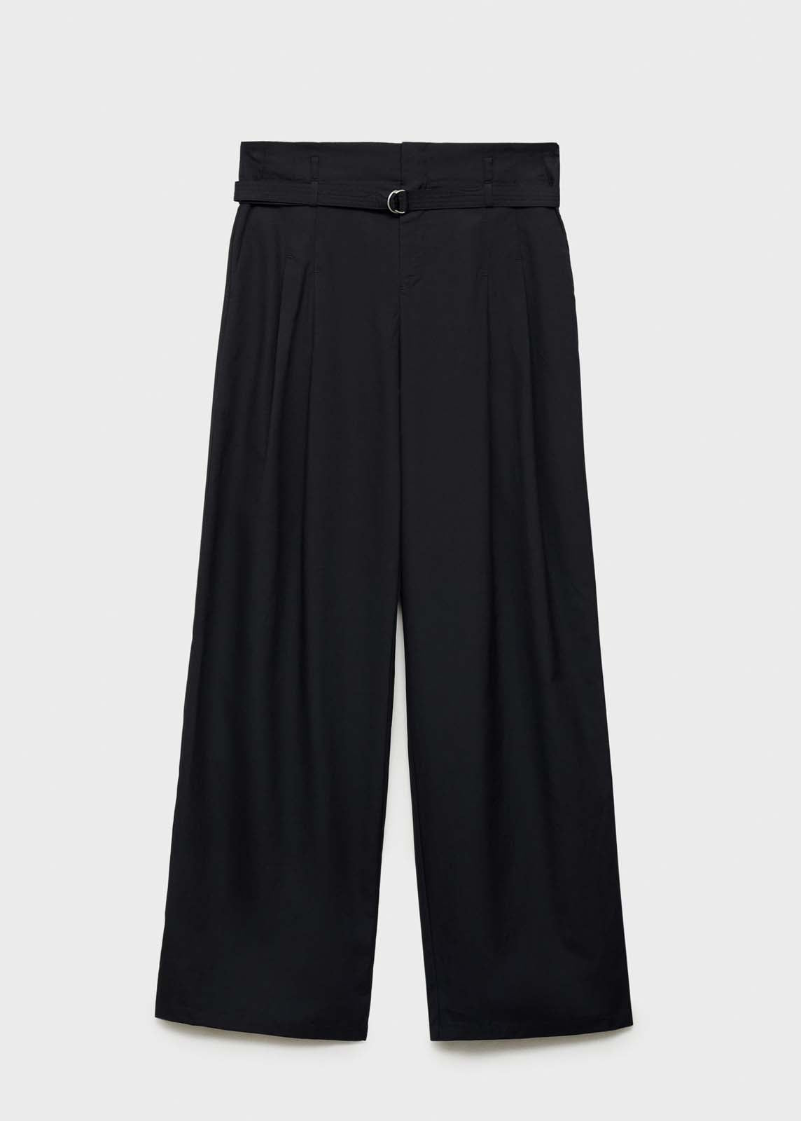 Diseño wideleg,Trabillas,Cierre delantero de botón, gancho y cremallera,Cinturón con cierre de hebilla,Dos bolsillos laterales,Detalle de pinzas delanteras,Diseño largo,Tejido 100% algodón,Tiro alto