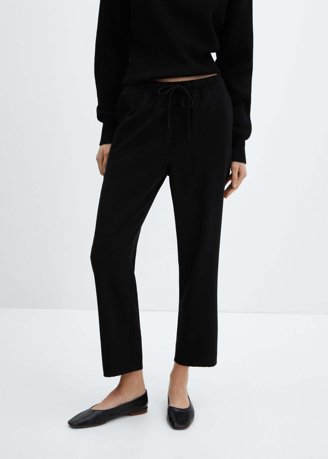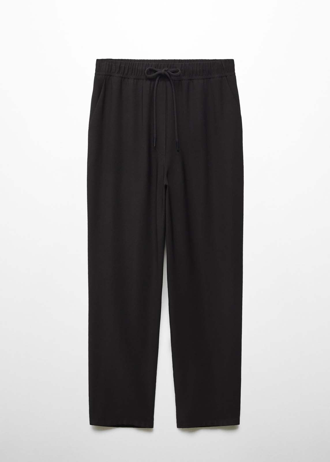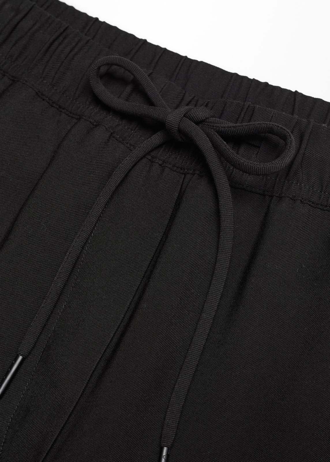 Tejido fluido,Cintura elástica,Diseño largo,Dos bolsillos laterales,Estilo jogger,Lazo ajustable en la cintura
