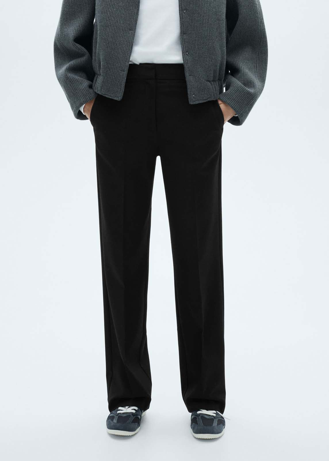 Tejido fluido,Dos bolsillos laterales,Cierre oculto de botón, gancho y cremallera,Diseño recto,Diseño largo,La modelo mide 1,78 y lleva una talla S/36