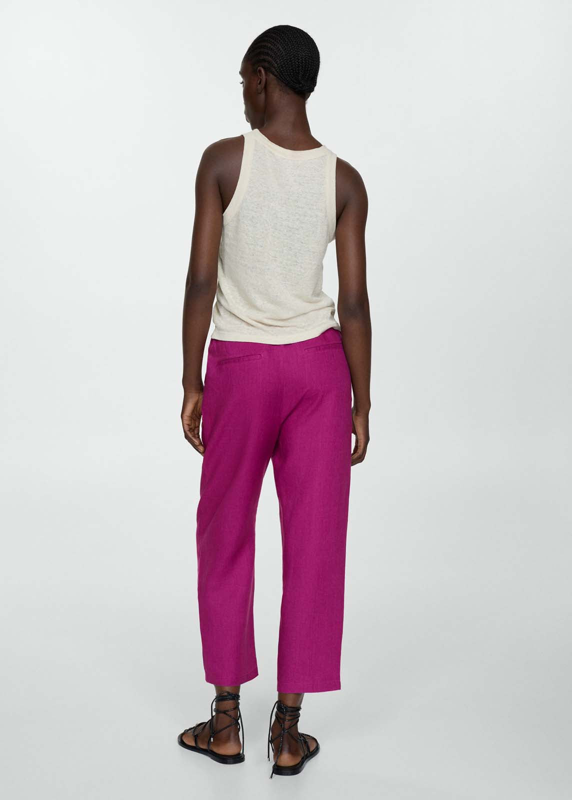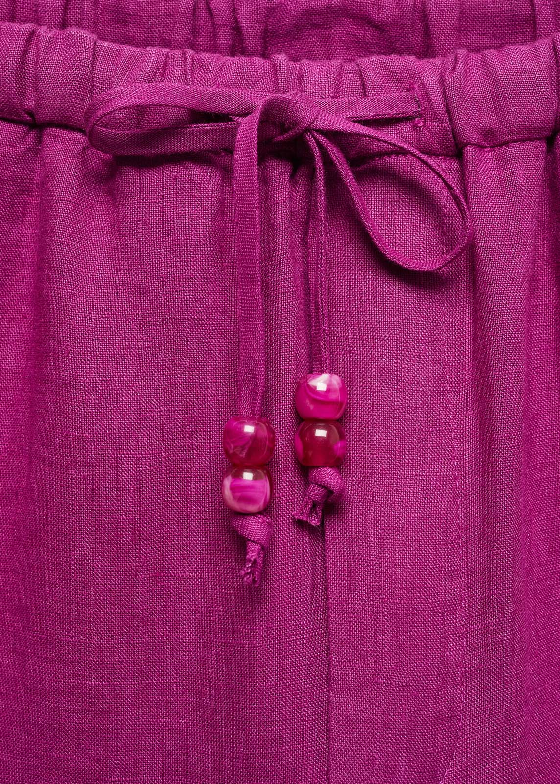 Tejido de lino,Diseño crop,Tejido fluido,Forro interior,Dos bolsillos laterales,Dos bolsillos de ribete en la parte posterior,Tiro medio,Cintura elástica con cierre de lazo,Diseño jogger