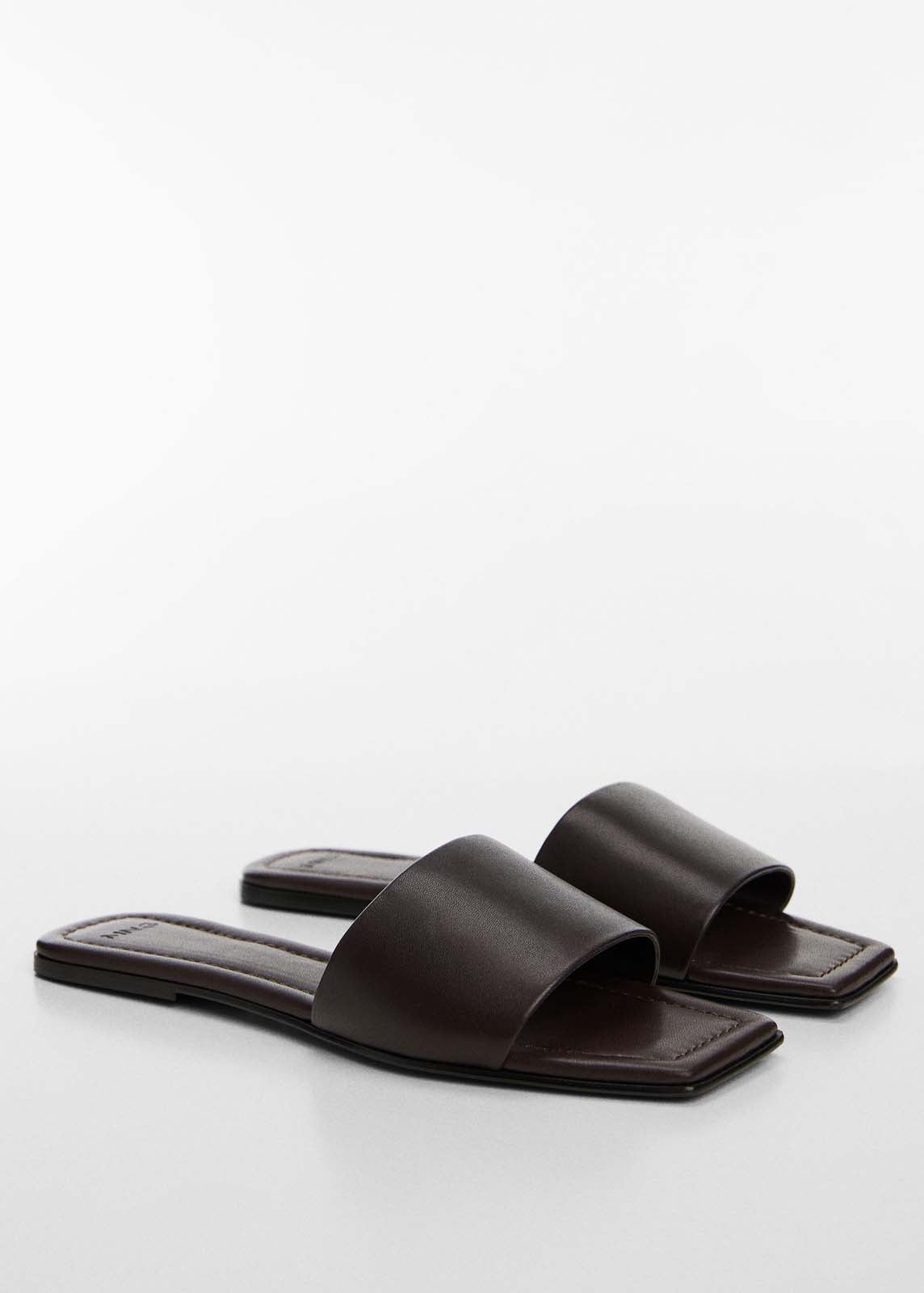 Abertura en la parte delantera,Destalonado,Punta cuadrada,Diseño de tiras,Flat,100% piel bovino