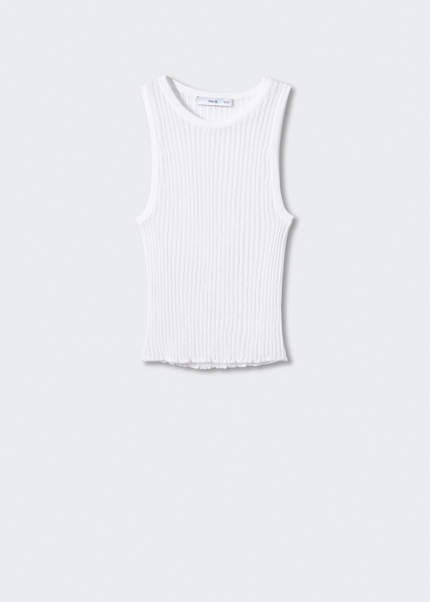 • Top canalé punto desagujado- Tejido de punto fino,Cuello redondo,Diseño entallado,Tejido de punto de canalé,Diseño corto,Sin mangas,Punto desagujado,Festival Season- No usar lejia, Plancha max 110°c, Lavar a maquina max 30°c centrifugado corto, No limpiar en seco, No se puede usar secadora- COMPOSICIÓN: 88% VISCOSA, 12% POLIAMIDA CANALÉ: 88% VISCOSA, 12% POLIAMIDA - 265mm x 520mm-