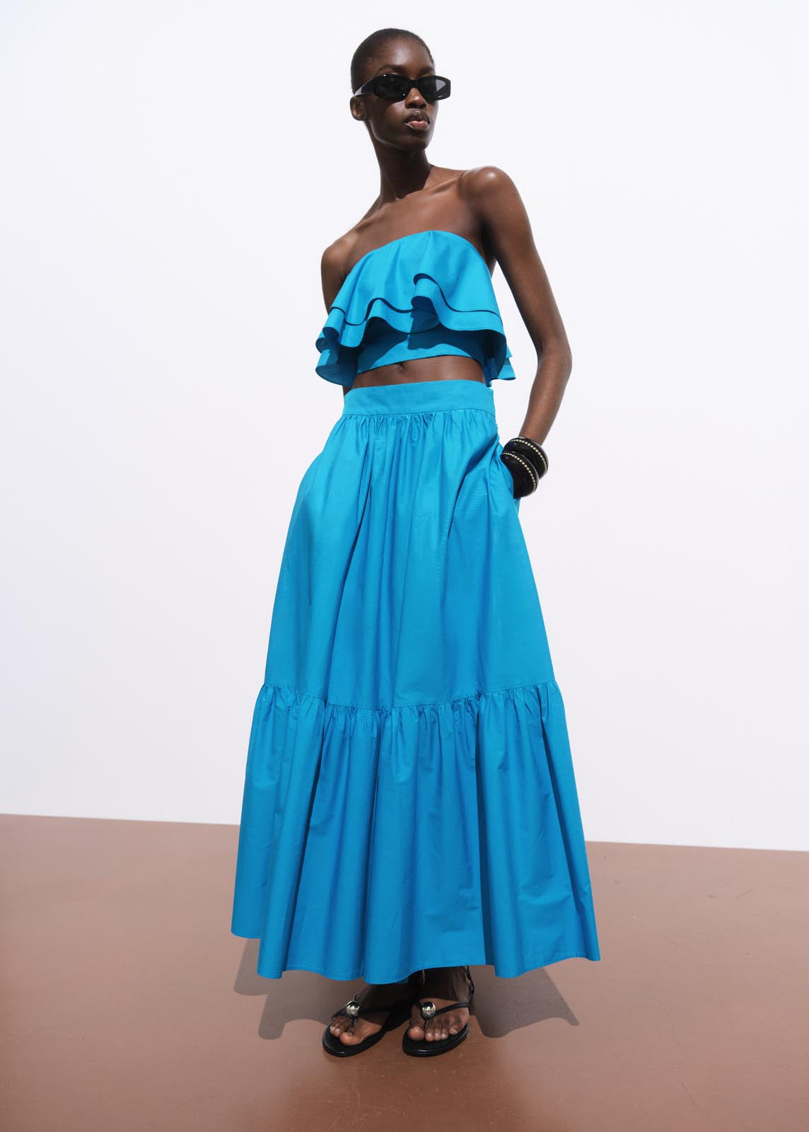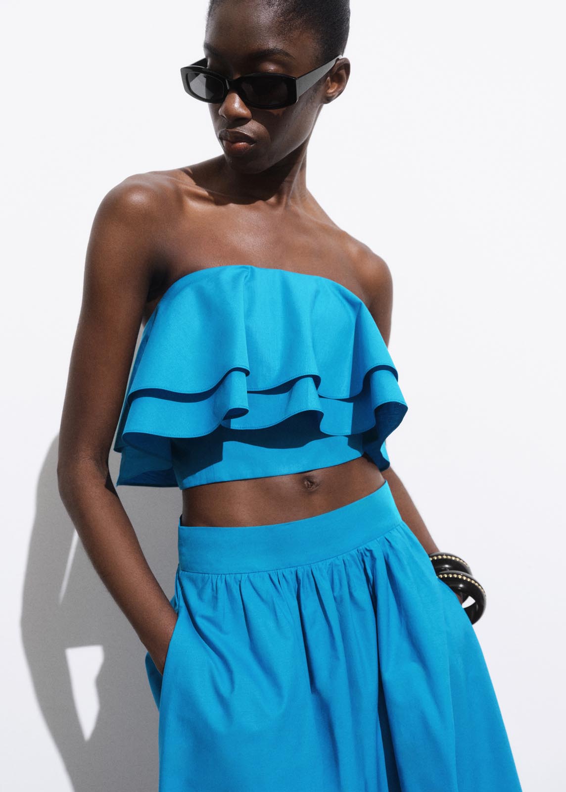 Sin mangas,Forro interior 100% de algodón,Diseño crop,Palabra de honor,Total look,Diseño volantes,Cierre de cremallera en la parte posterior,Tejido 100% algodón