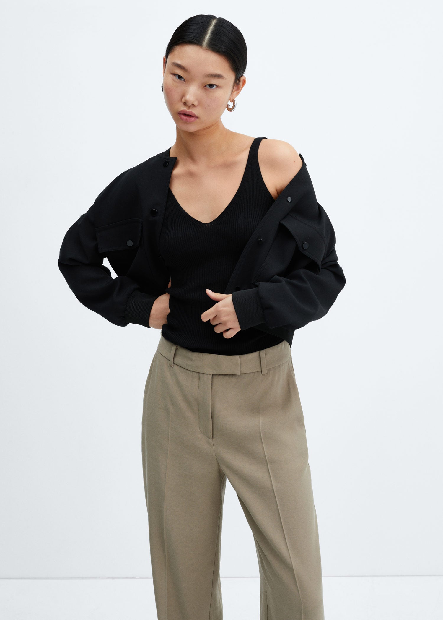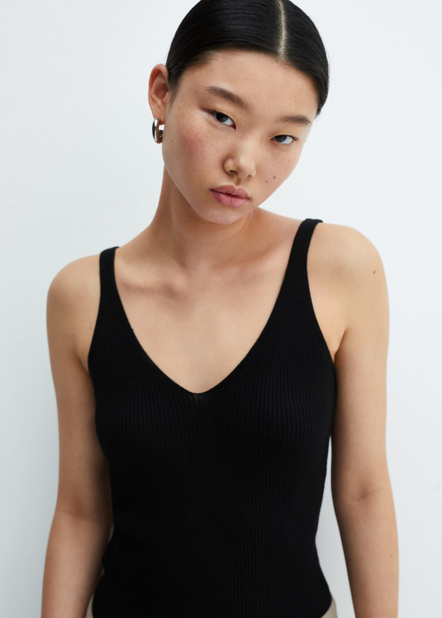 Top punto escote pico- Tejido de punto fino,Cuello pico,Diseño largo,Espalda abierta,Tirantes finos,Diseño entallado,Disponible Plus,Looks de oficina- No usar lejia, Plancha max 110°c, No limpiar en seco, No se puede usar secadora, Lavar a mano max 30°c- COMPOSICIÓN: 72% VISCOSA, 28% POLIAMIDA - 390mm-