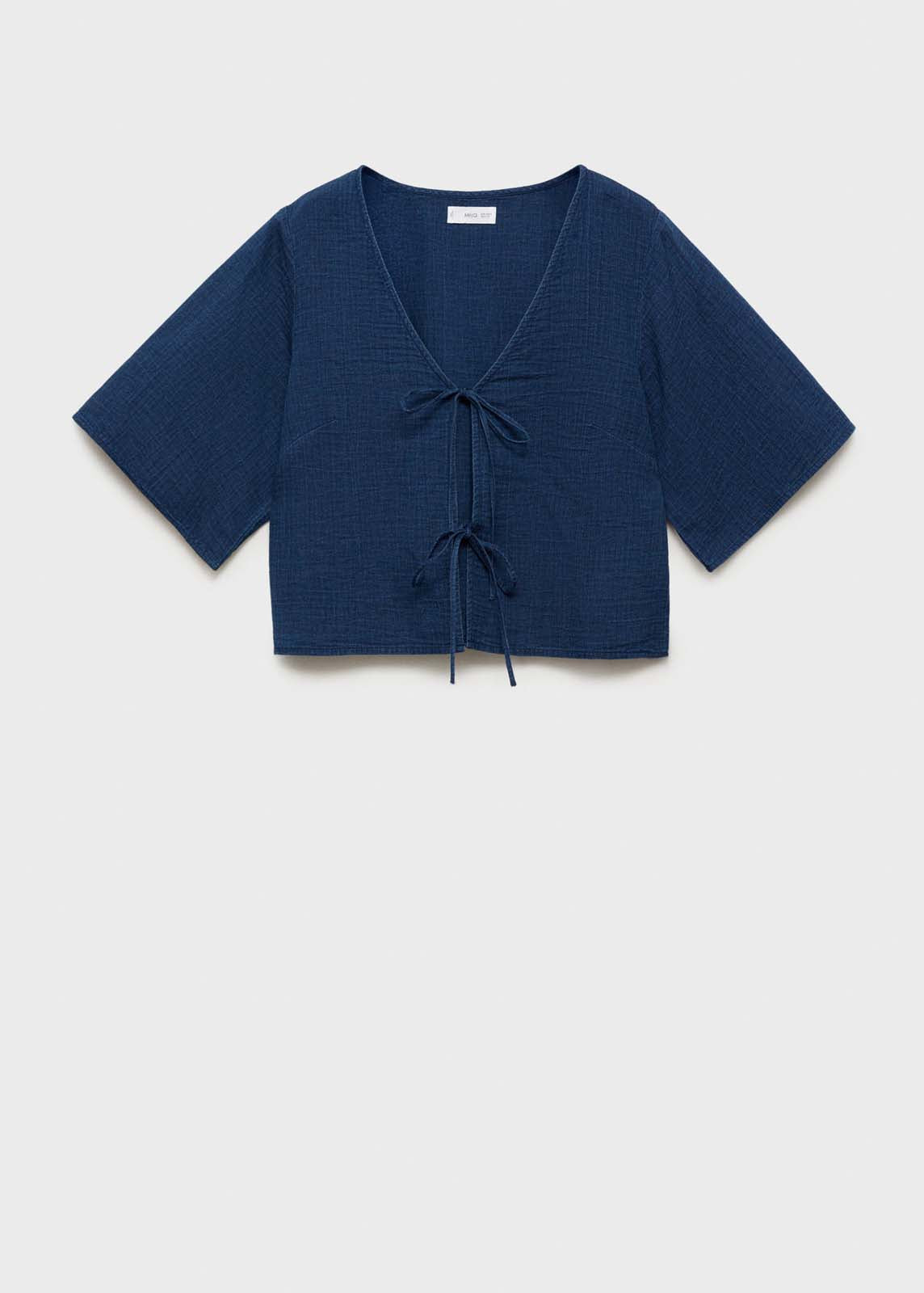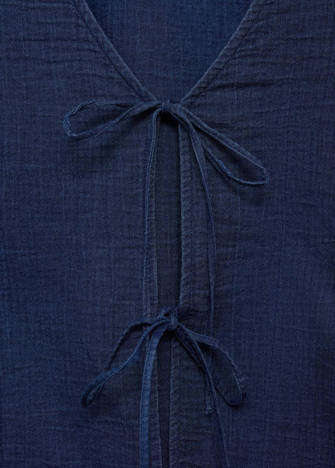 Manga corta,Diseño crop,Total look,Soft denim,Diseño recto,Cuello de pico,Cierre de lazos en la parte delantera,Tejido 100% algodón