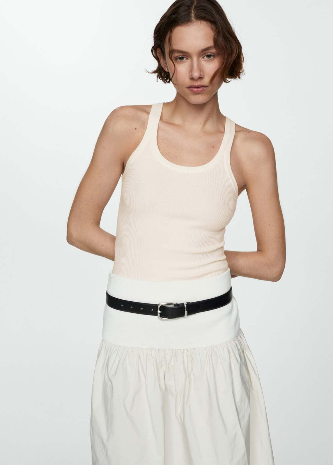 Cuello redondo,Tejido de punto de canalé,Tirantes finos,Sin mangas,Diseño entallado