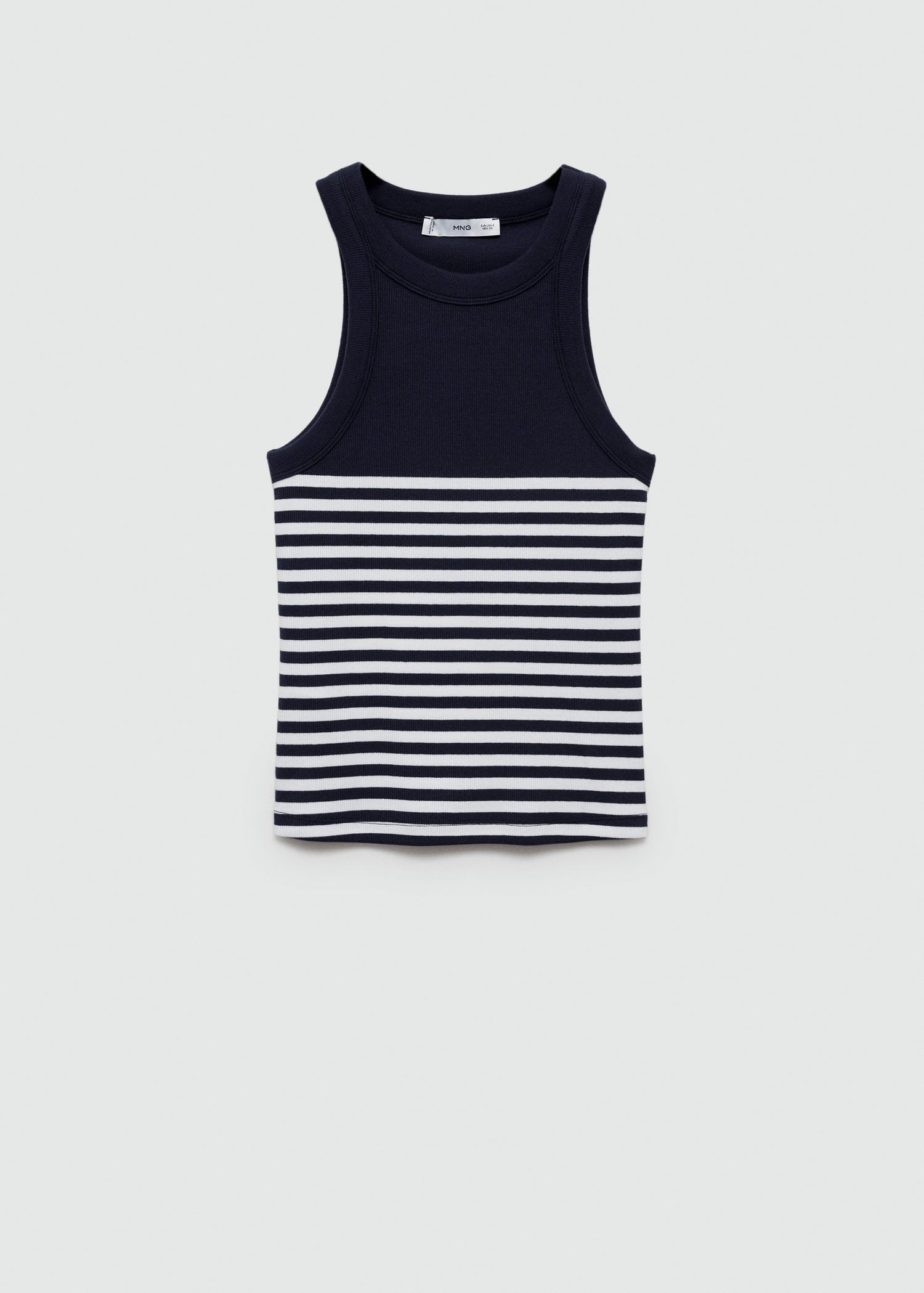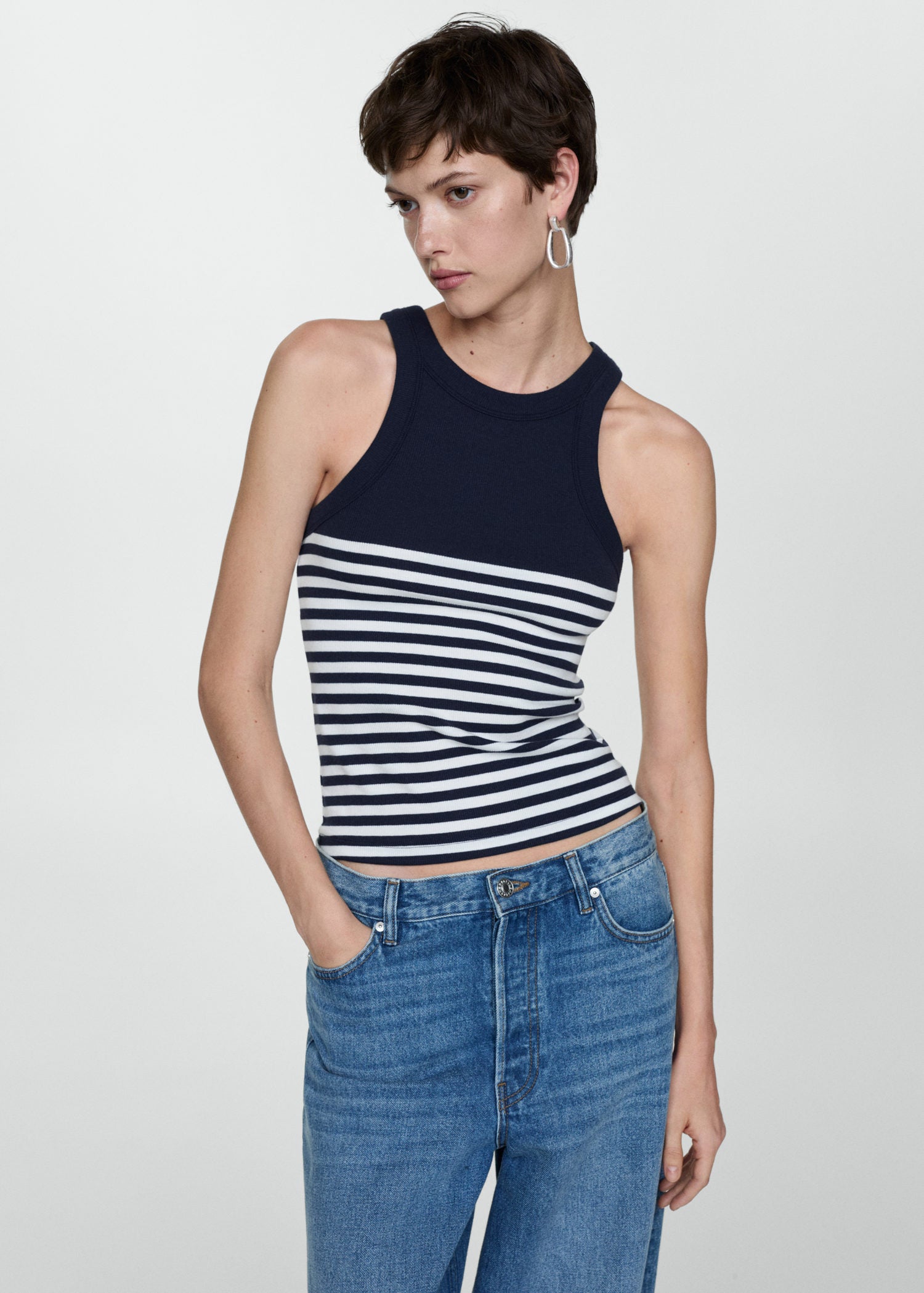 Tejido mezcla de algodón,Estampado de rayas,Diseño recto,Slim fit,Sin mangas,Cuello redondo