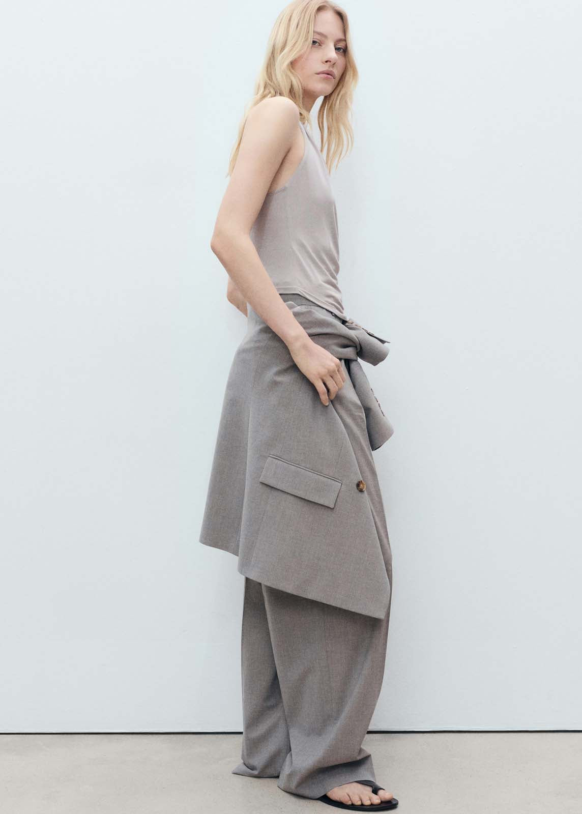 Diseño cruzado,Sin cierre,Tejido mezcla de modal,Sin mangas,Cuello halter,Diseño entallado,Cintura drapeada