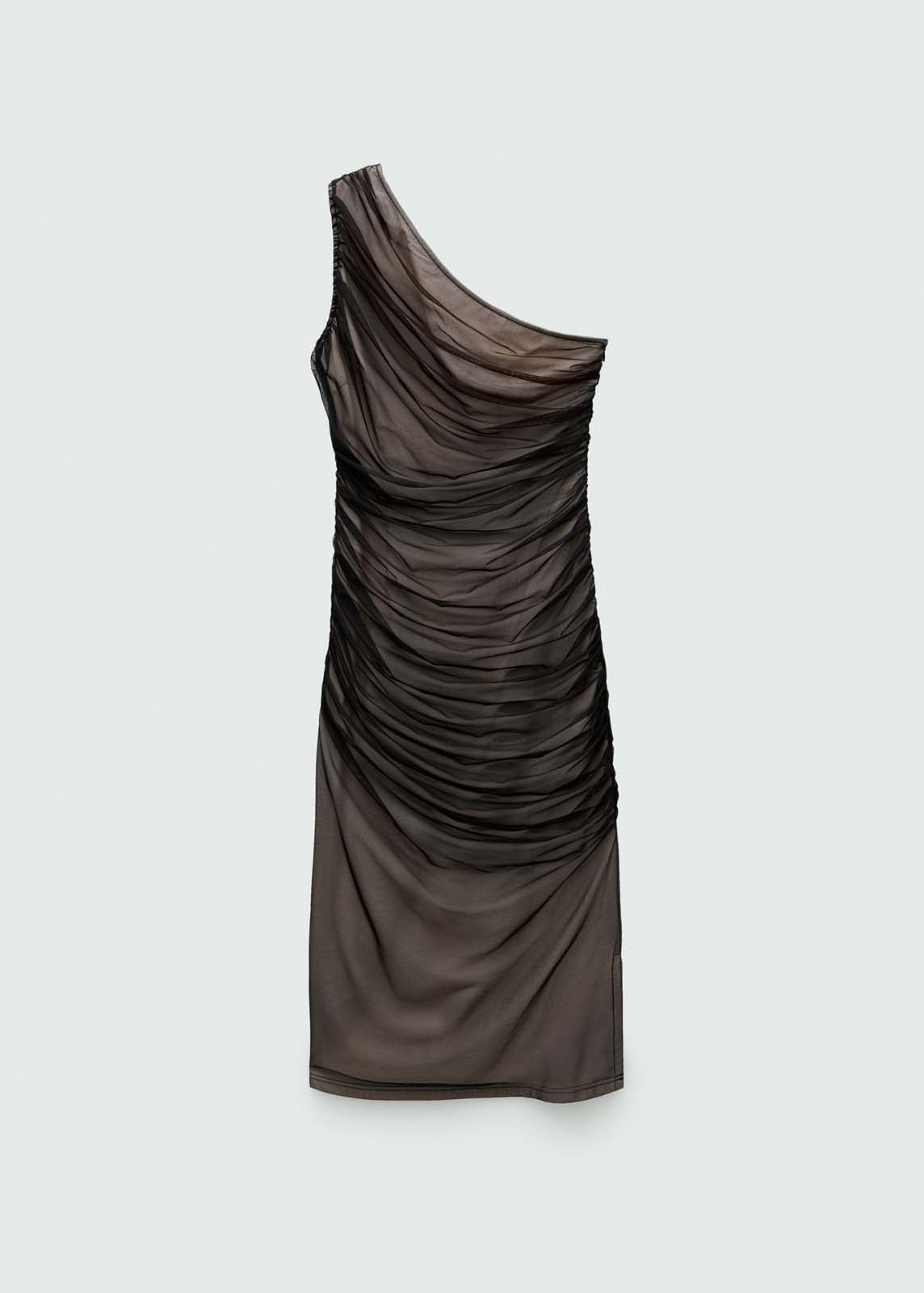 Forro interior,Colección fiesta y ceremonia,Tirante ancho,Tejido de malla,Diseño asimétrico,Cuello asimétrico,Diseño largo,Sin mangas,Diseño drapeado,Diseño entallado,La modelo mide 1,77 y lleva una talla S/36,Cierre de cremallera lateral