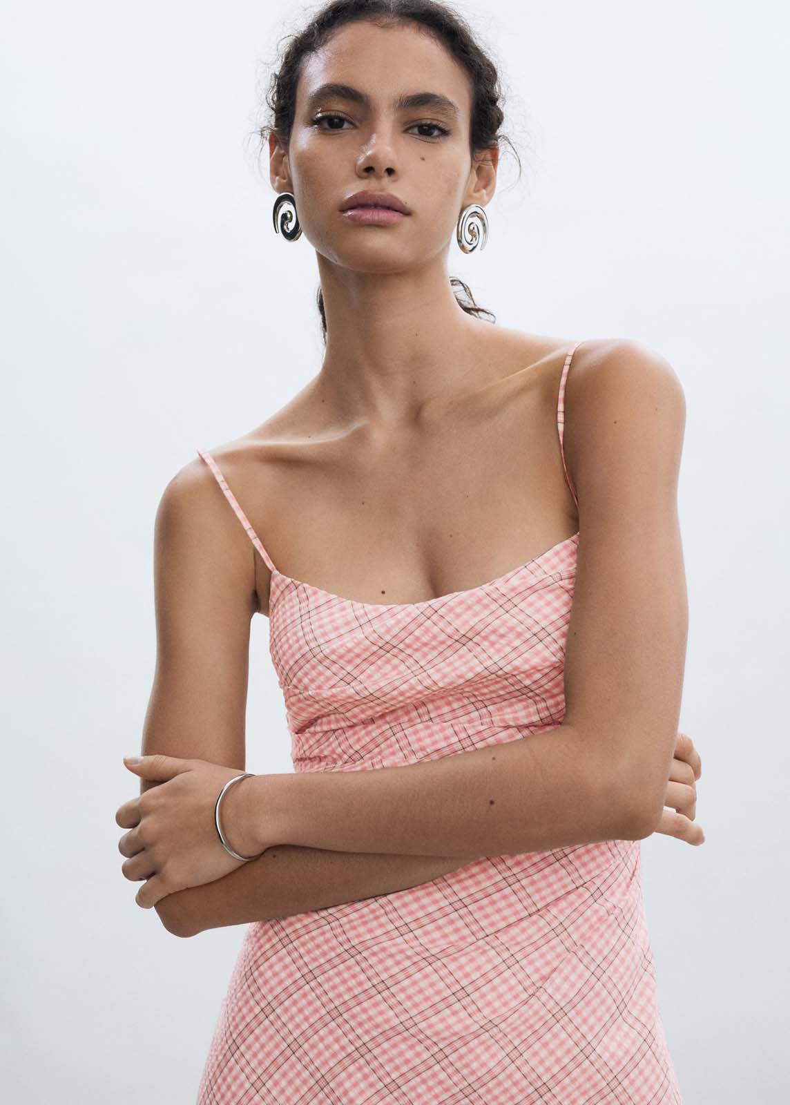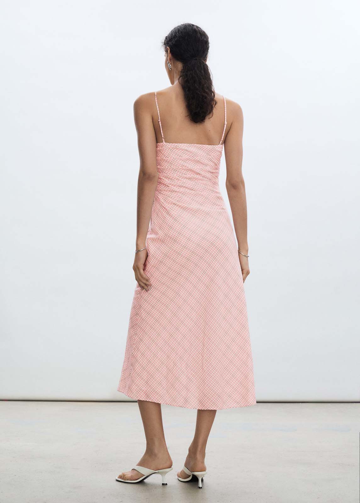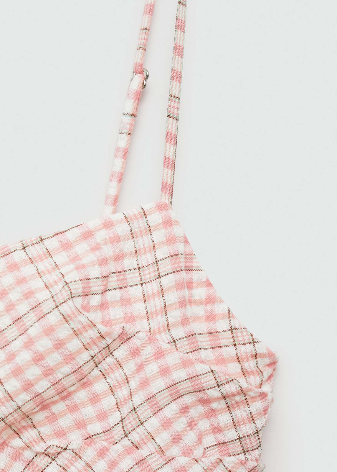 Estampado de cuadros,Tirantes finos,Diseño recto,Cierre cremallera invisible en el lateral,Diseño midi,Sin mangas,Tejido mezcla de algodón,Escote cuadrado,Diseño entallado