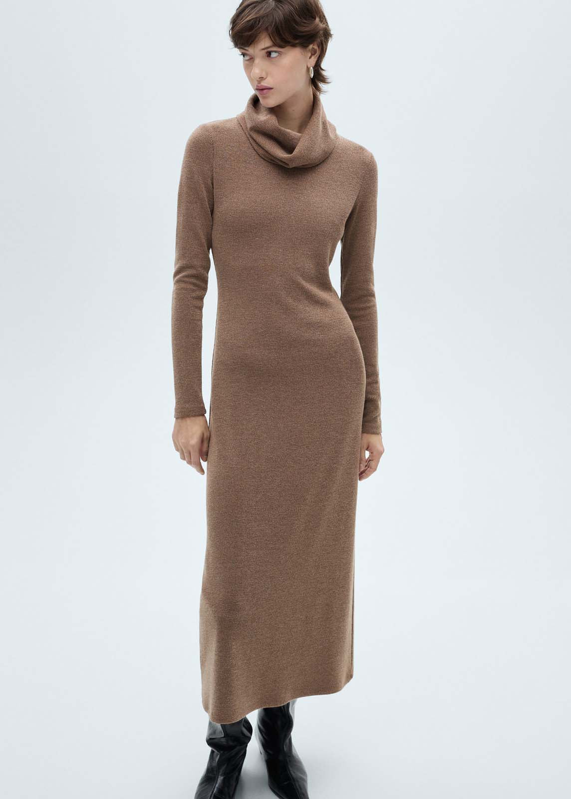 Cuello vuelto,Tejido de punto,Sin cierre,Tejido ligero,Diseño evasé,Cuello alto,Diseño midi,Manga larga