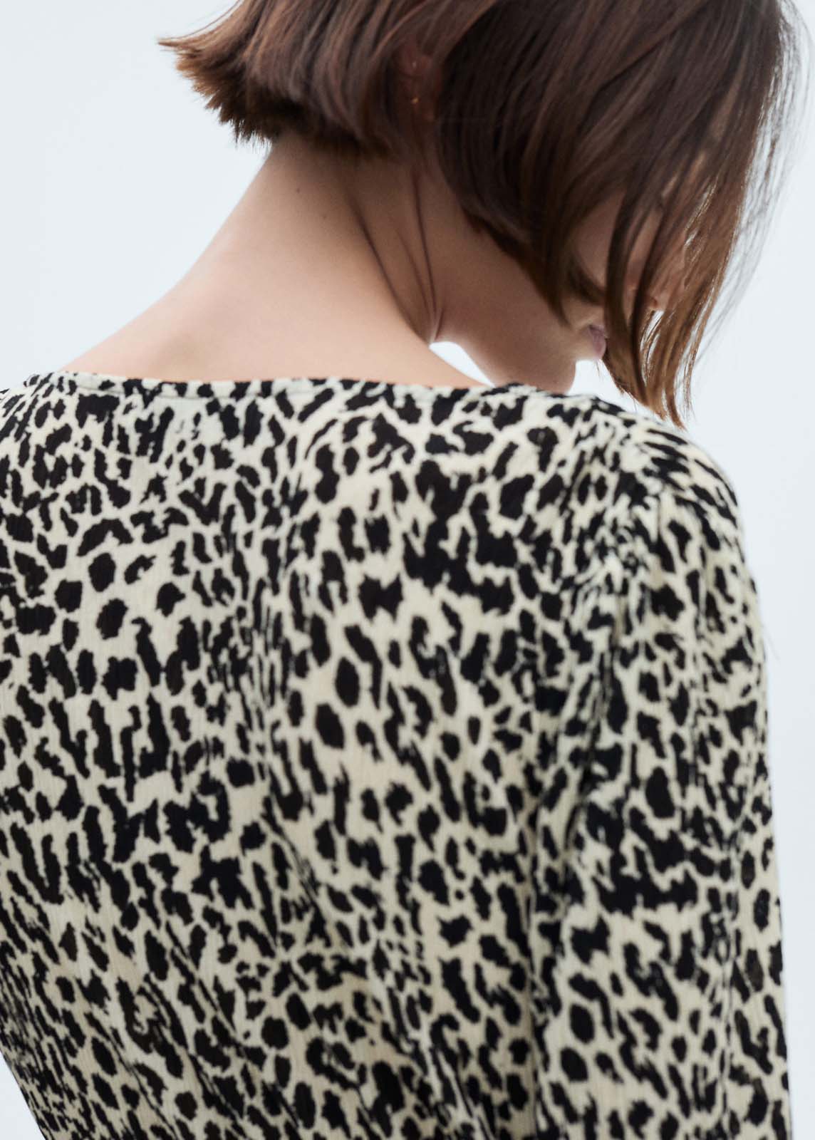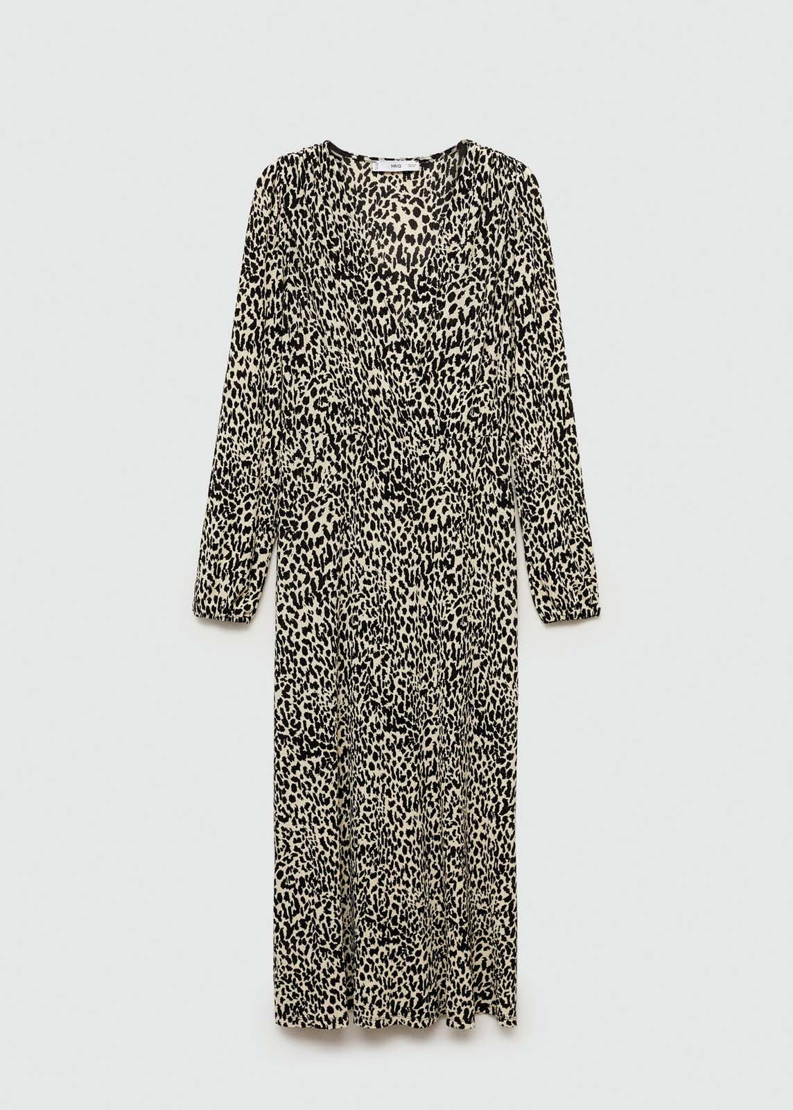 Tejido fluido,Estampado animal print,Sin cierre,Escote de pico,Diseño recto,Estampado de leopardo,Diseño largo,La modelo mide 1,79 y lleva una talla S/36,Manga larga