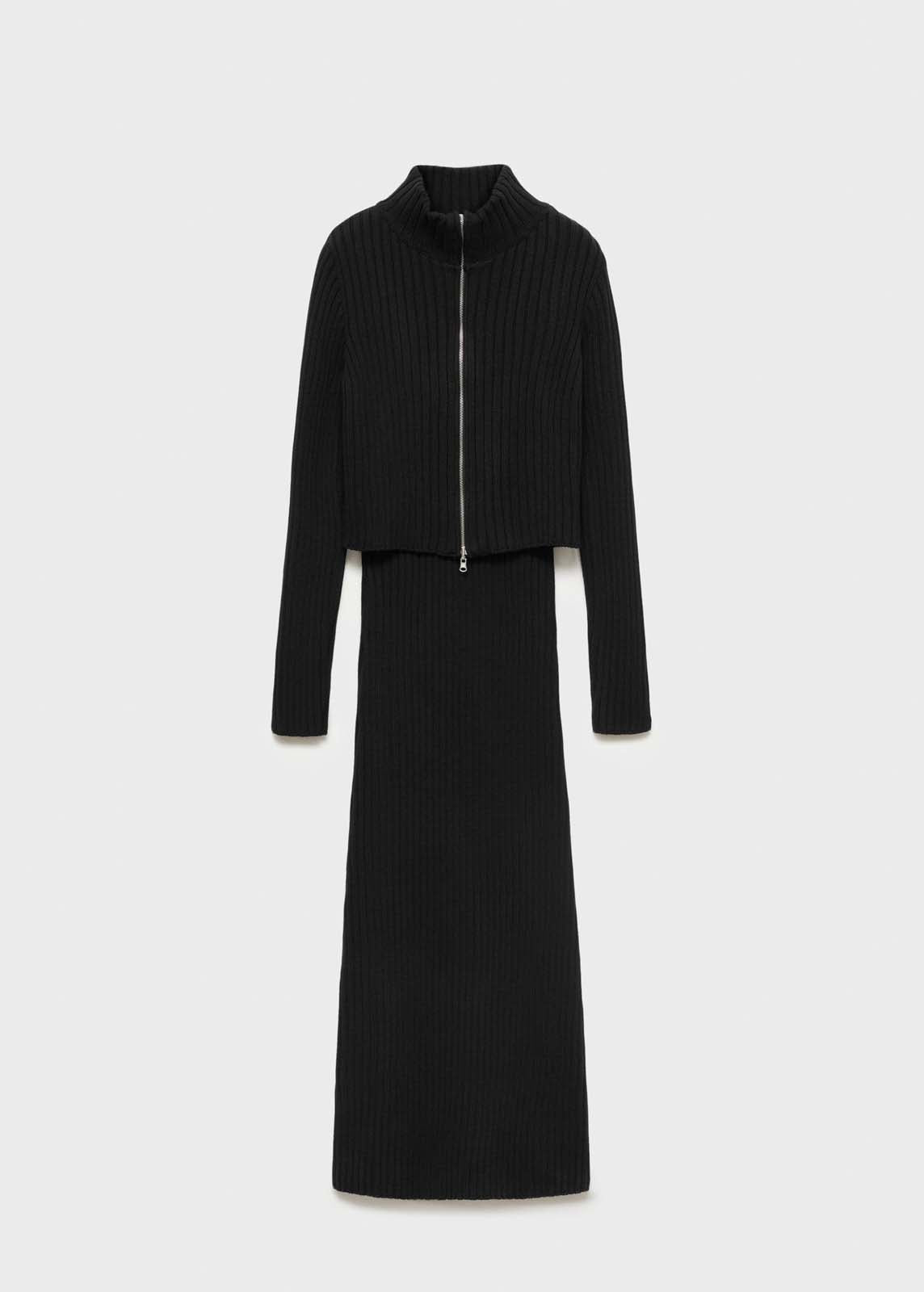 Tejido de punto en canalé,Diseño recto,Cierre de cremallera en la parte delantera,Diseño midi,Diseño combinado,Cuello perkins con cierre de cremallera,La modelo mide 1,77 y lleva una talla S/36,La modelo mide 1,78 y lleva una talla S/36,Manga larga