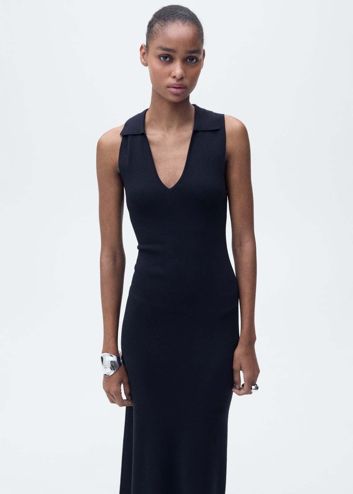 Cuello pico con solapa,Tejido de punto fino,Sin cierre,Tirantes anchos,Disponible Plus,Diseño midi,Sin mangas,Diseño entallado