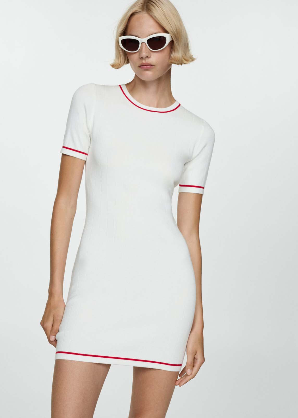 Manga corta,Tejido de punto fino,Terminaciones en contraste,Sin cierre,Diseño corto,Cuello redondo,Diseño entallado