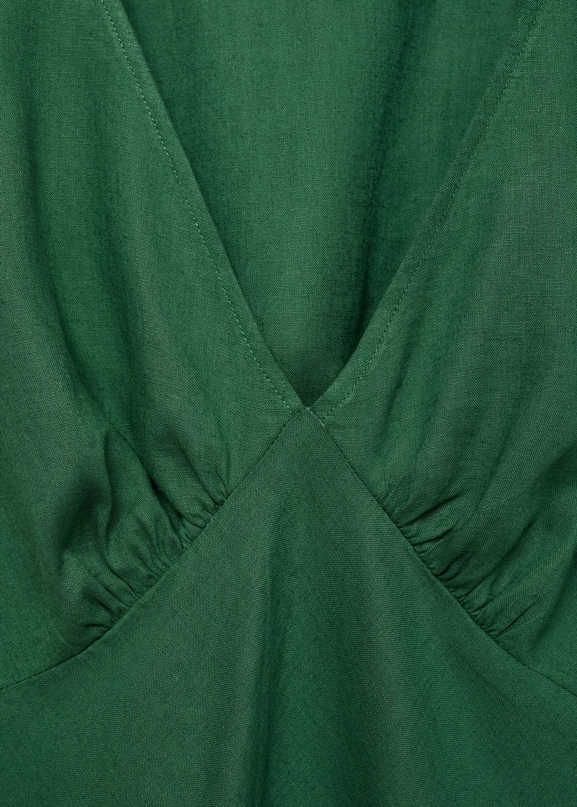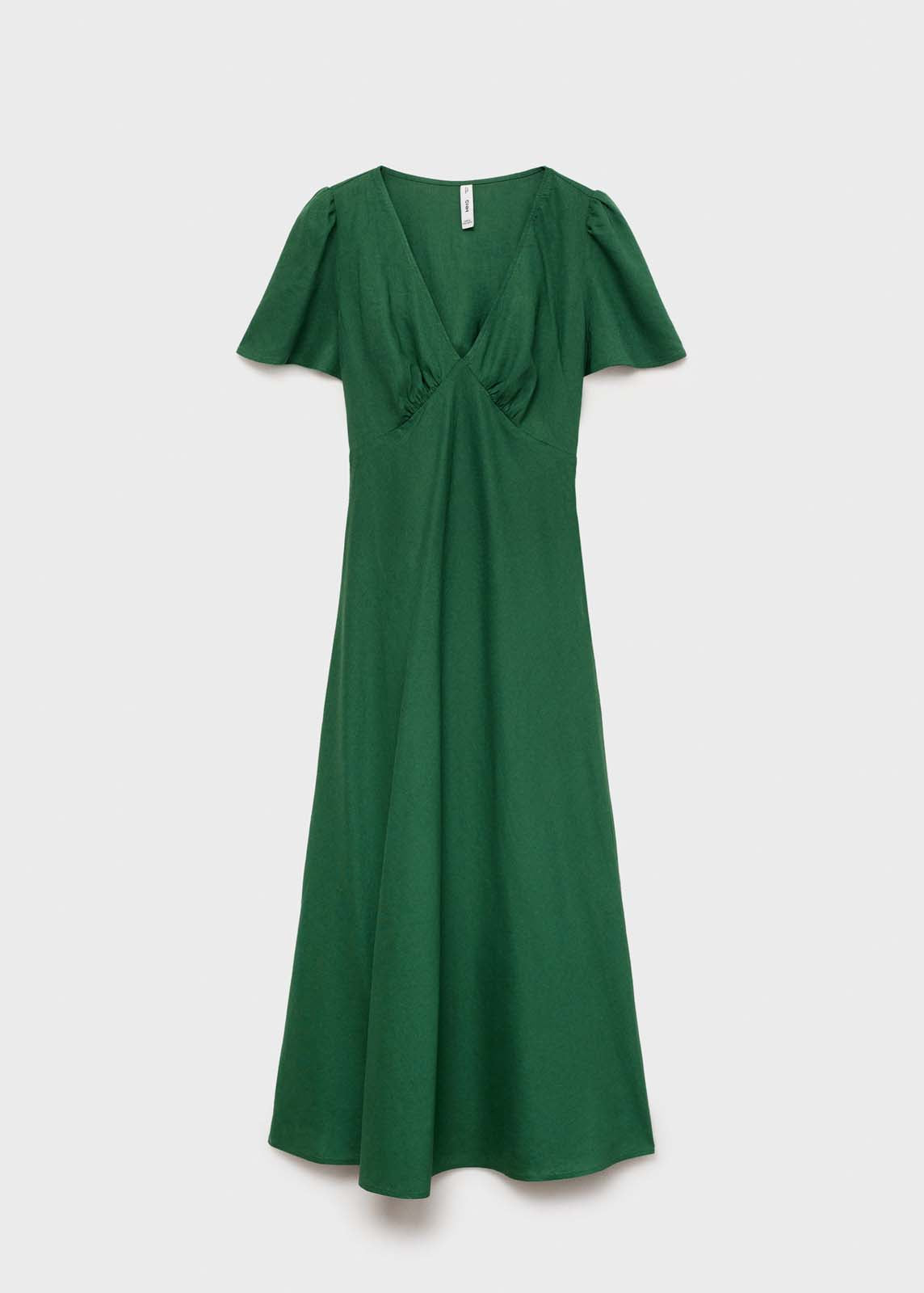 Manga corta,Tejido mezcla de lino,Diseño evasé,Escote drapeado,Cinta en la cintura con cierre de lazo,Disponible Plus,Estampado floral,Cuello de pico,Diseño midi,Cierre de cremallera lateral