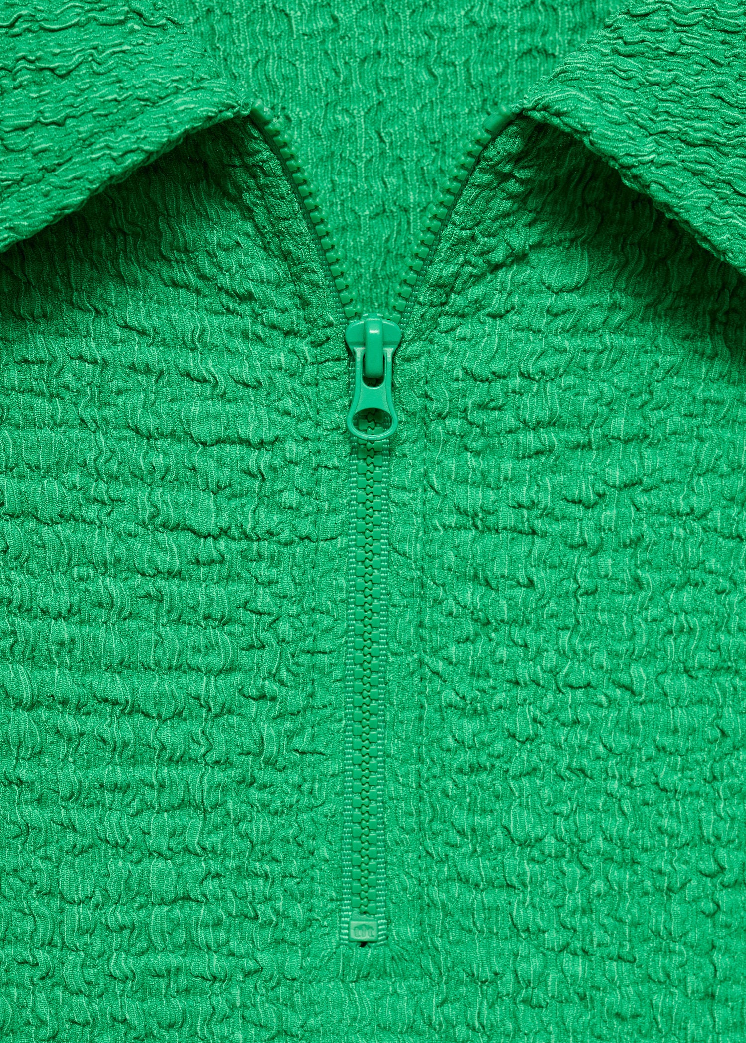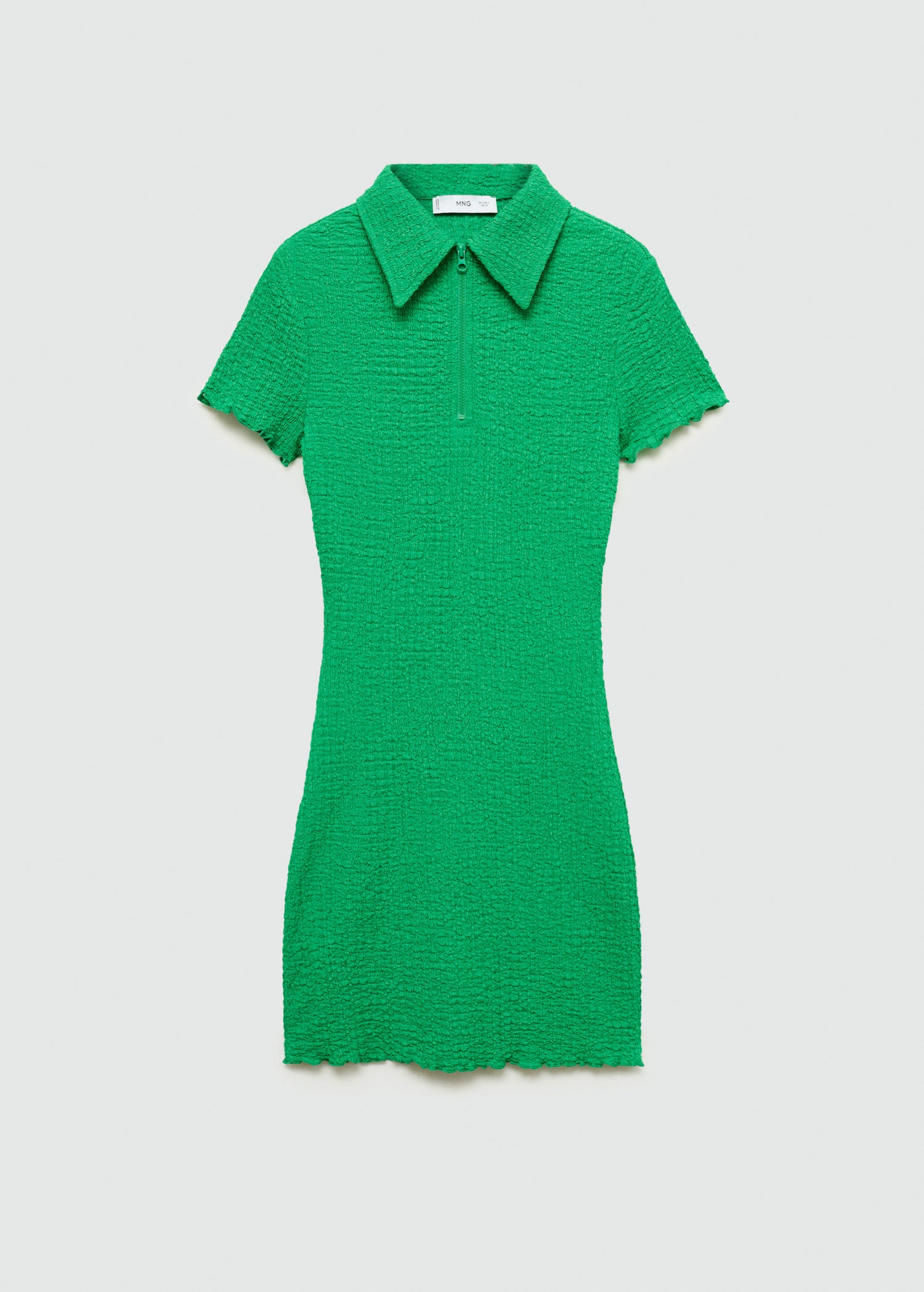 Manga corta,Diseño corto,Tejido con textura,Cuello polo,Diseño entallado,Cierre de cremallera en el cuello