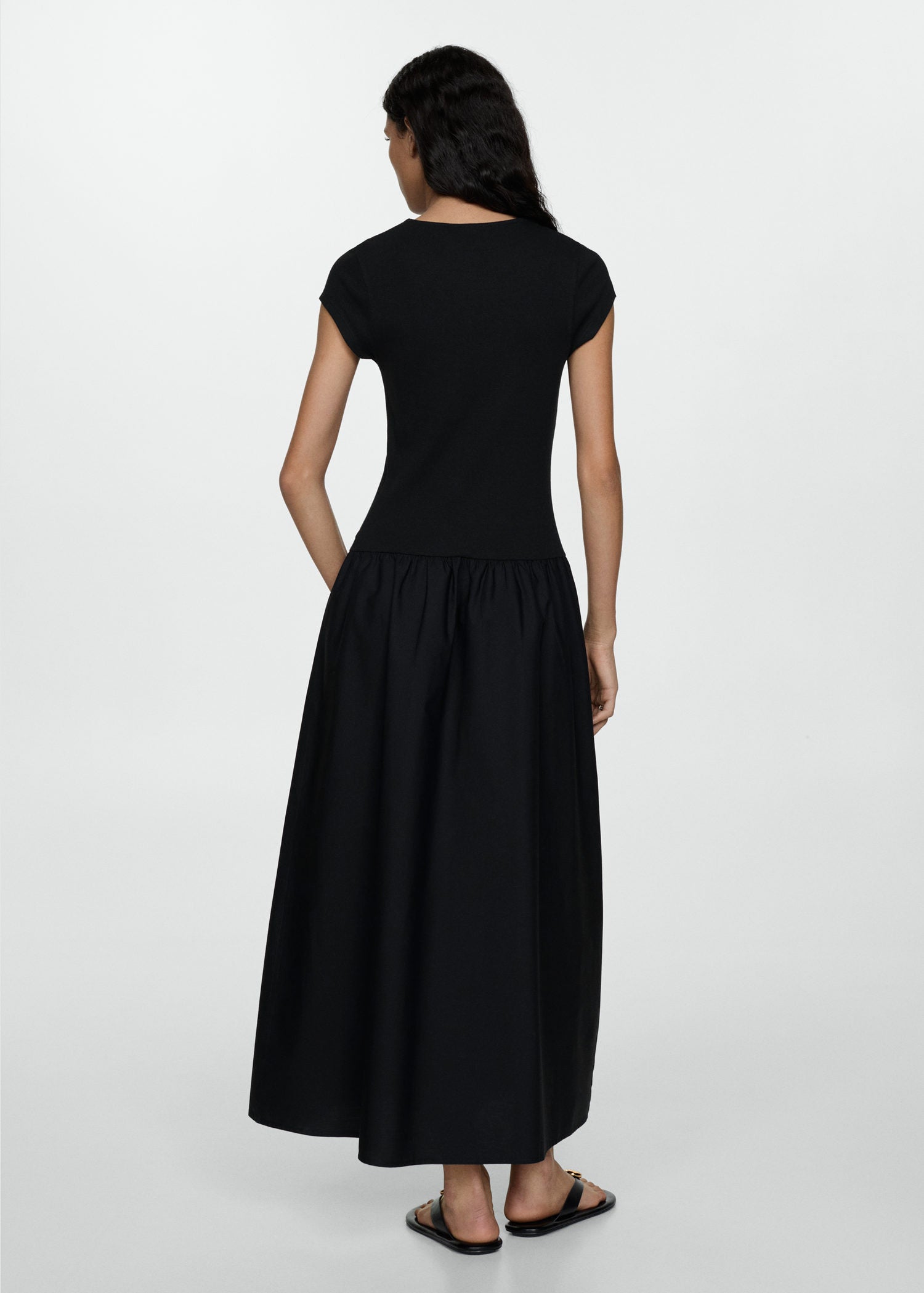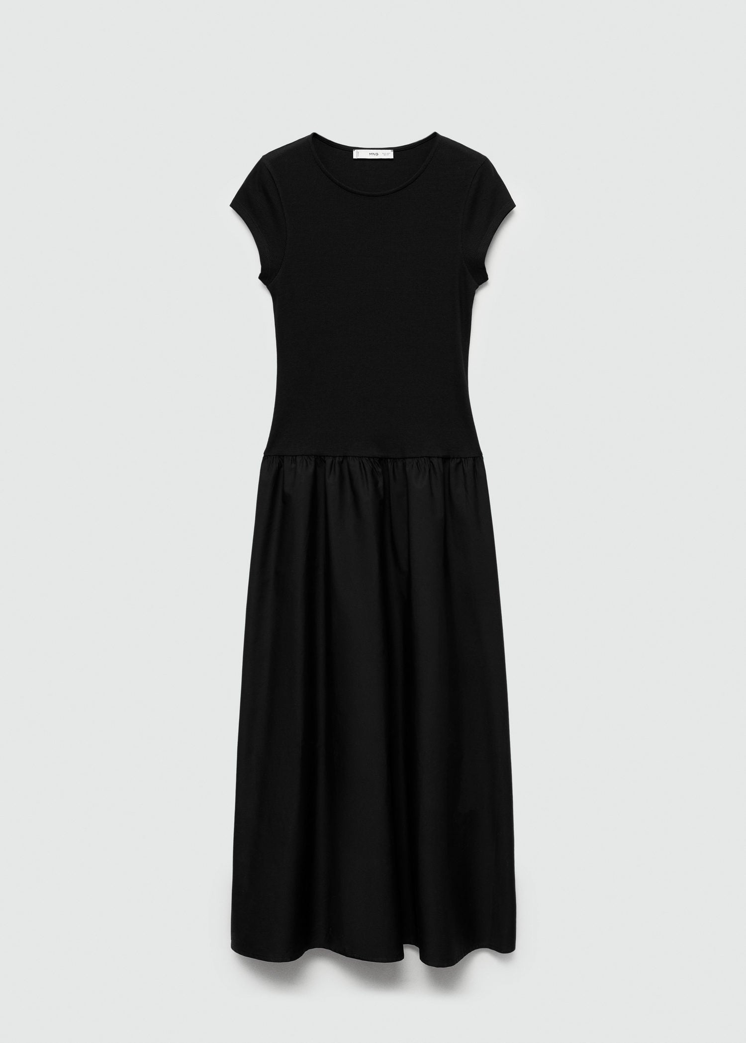 Manga corta,Tejido de punto,Cuello redondo,Diseño evasé,Diseño largo,Diseño combinado,Tejido 100% algodón