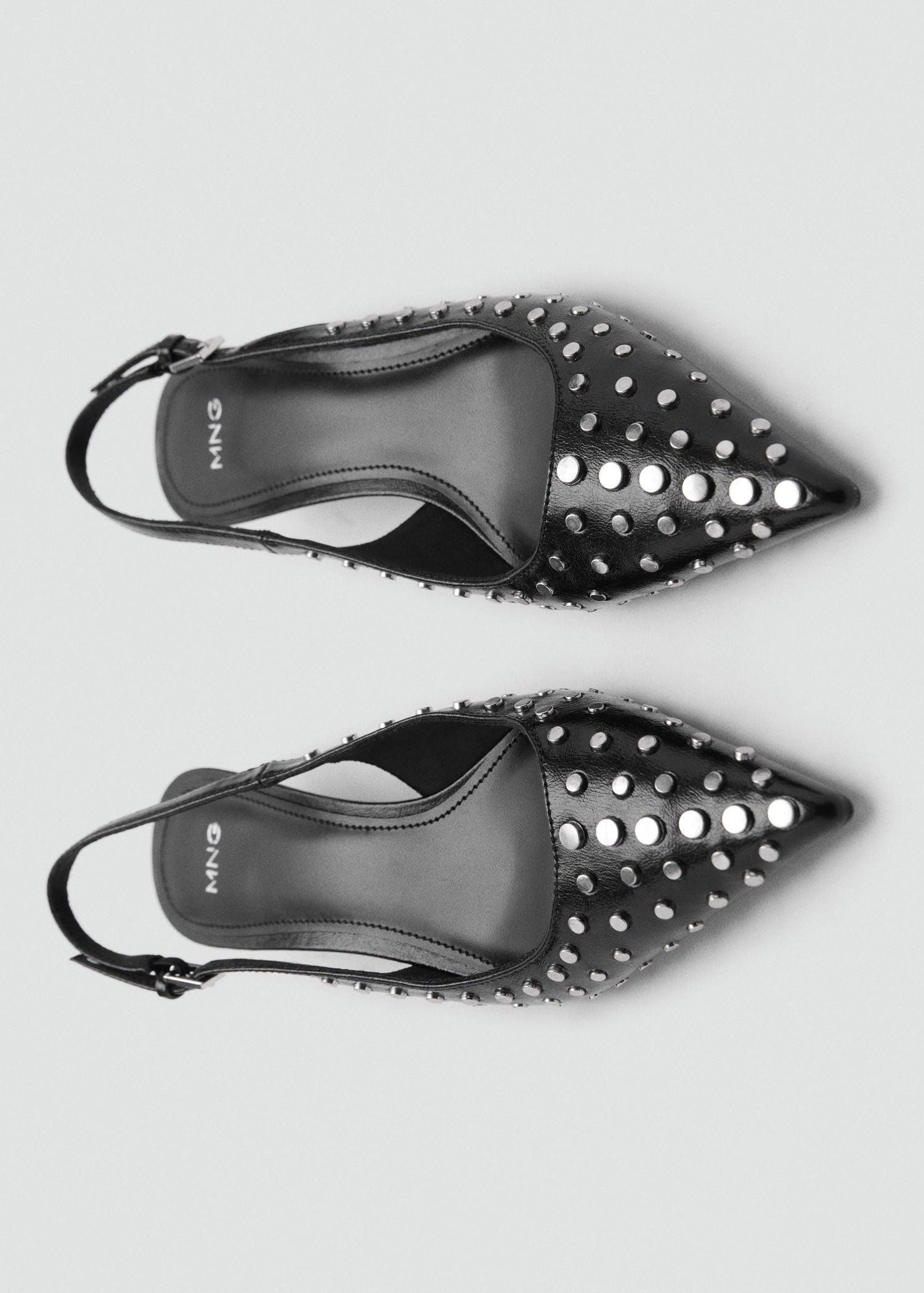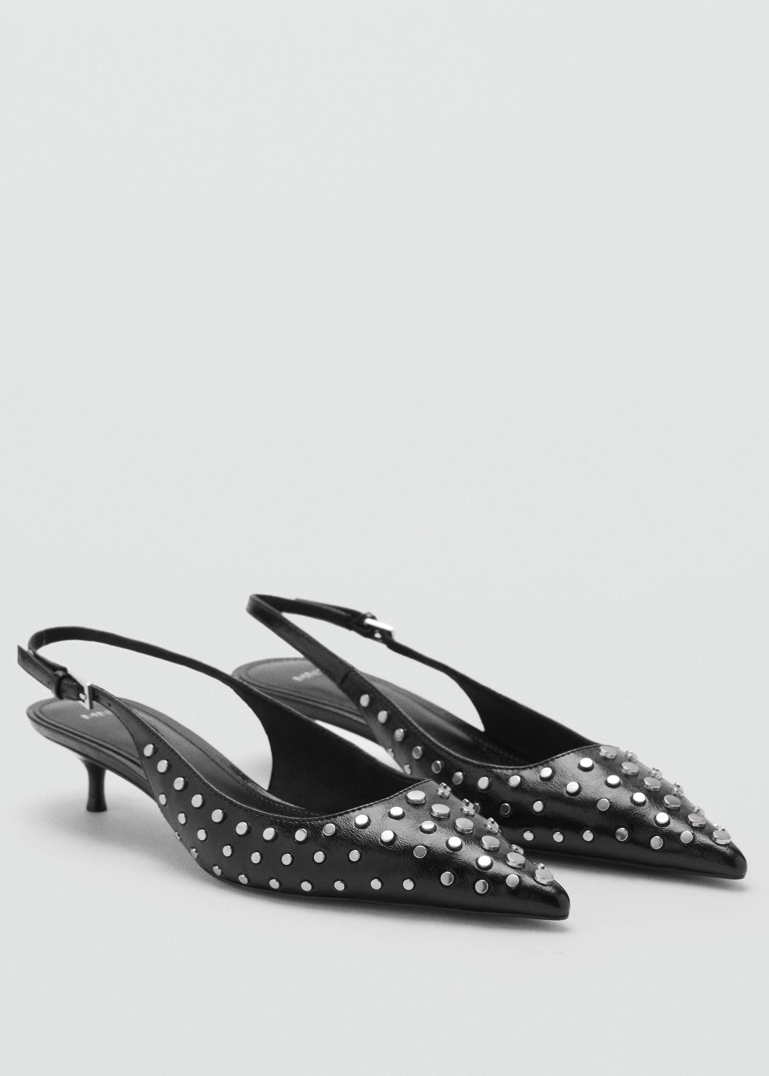 El tacón mide 4 cm,Con punta,Diseño destalonado,Tacón kitten,Tachuelas decorativas